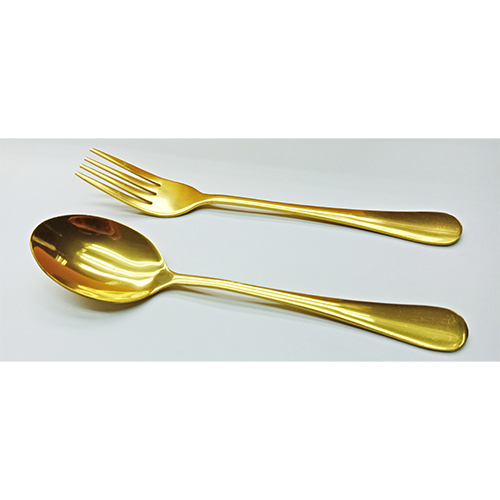 PVD Hard Coating (TiN) on spoon and fork will bring luxury to any dining table. Our gold coatings can increase the durability and wear resistance of utensils.